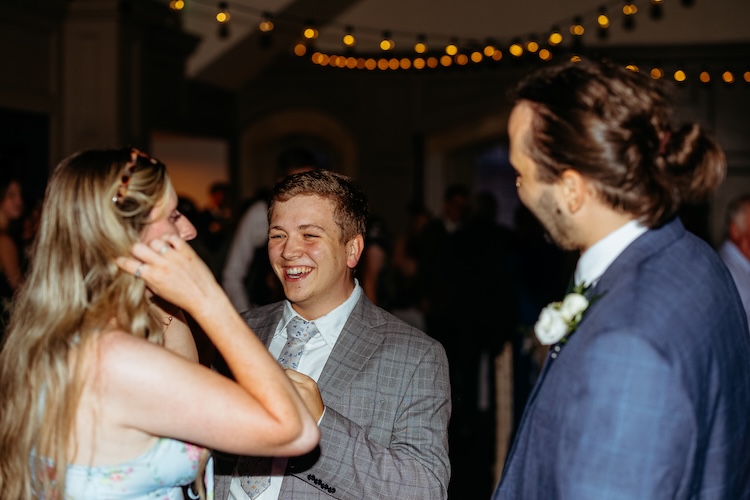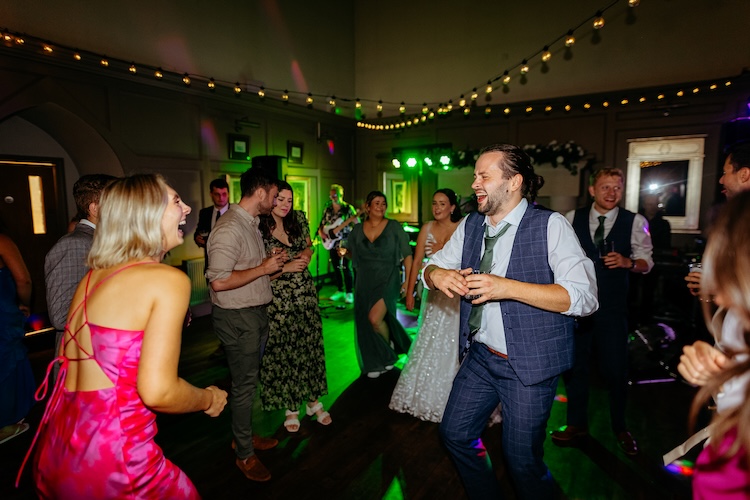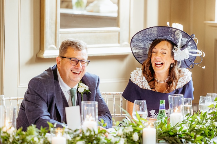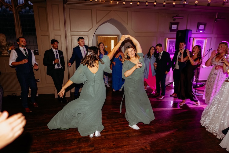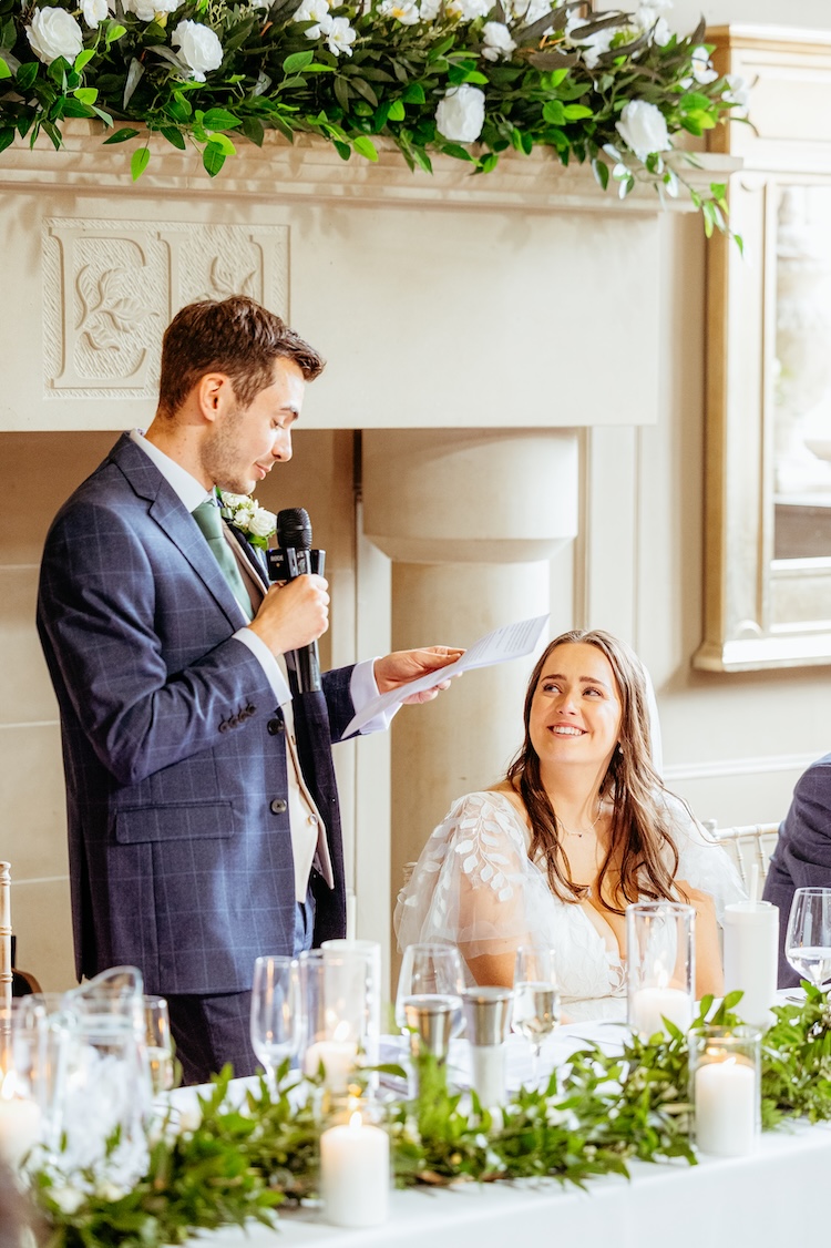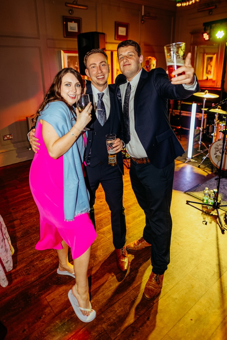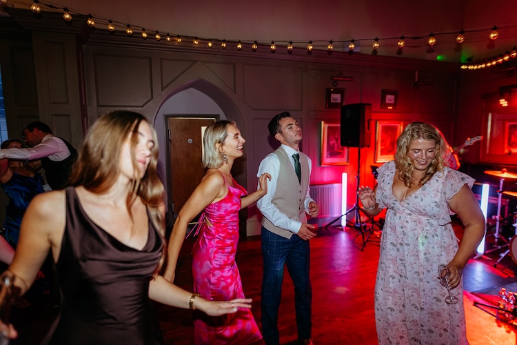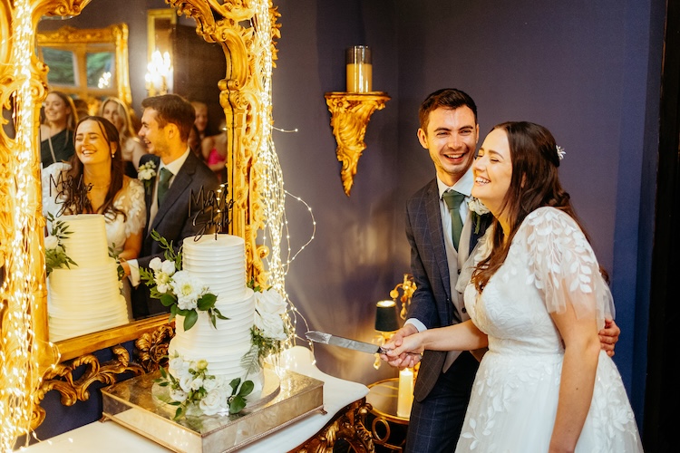 After the ceremony, the celebrations moved outside, where the sun shone on Ellingham Hall’s beautiful gardens. The newlyweds and their families enjoyed relaxed group portraits, capturing smiles and laughter against the Hall’s striking stone backdrop and lush autumn foliage. One of the most memorable moments was Callum and Alice’s romantic portrait in front of the Hall’s iconic round window, a true symbol of their day.