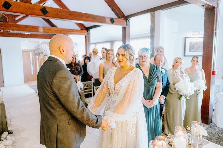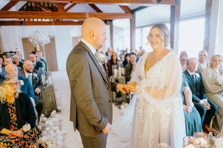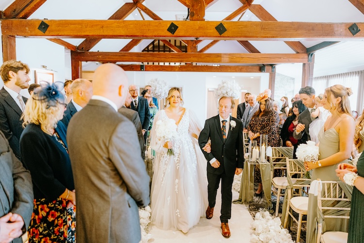 The day began with an emotional ceremony, as Emily made her entrance down the aisle, surrounded by family and friends. The light-filled ceremony space, with its exposed beams and natural décor, created a warm and inviting atmosphere for the couple to exchange their vows.