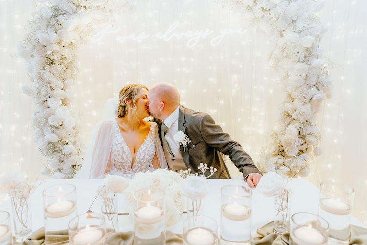 The celebrations continued into the evening with a classic cake-cutting moment, where Emily and Ryan shared a kiss beside their elegant white tiered cake. The laughter, joy, and heartfelt speeches made for a truly unforgettable reception, with family and friends coming together to celebrate the start of Emily and Ryan’s new chapter.