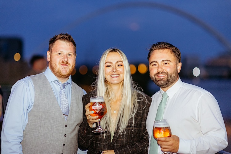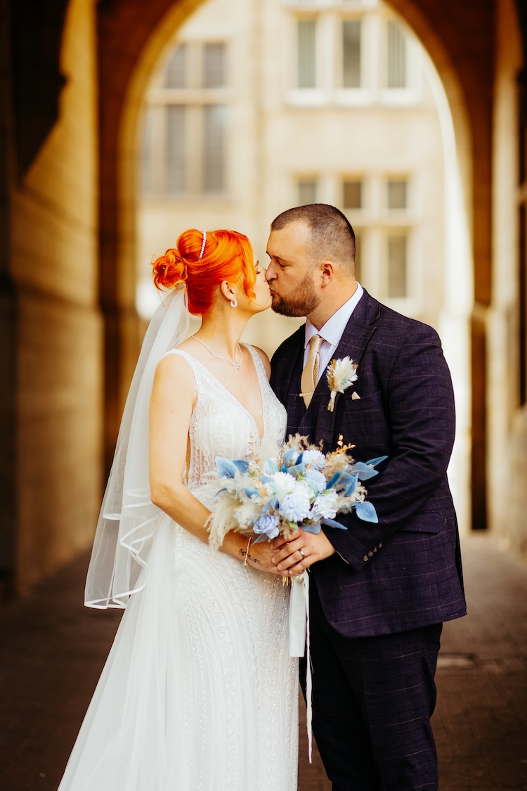 As evening fell, the celebrations continued with a magical riverside moment beneath the illuminated arches. Surrounded by city lights and the gentle flow of the river, Heather and Chris shared a kiss that perfectly captured the spirit of their wedding – modern, meaningful, and full of joy.