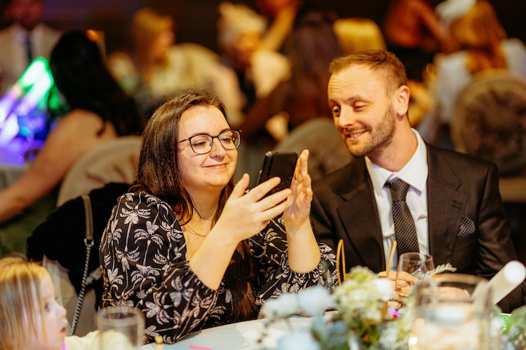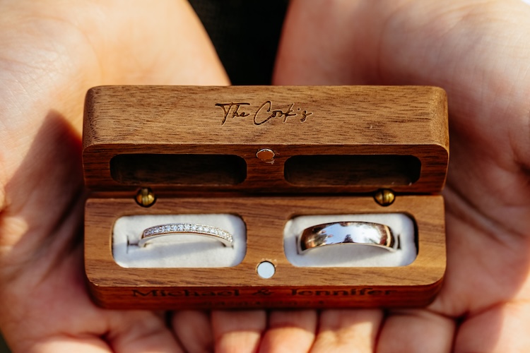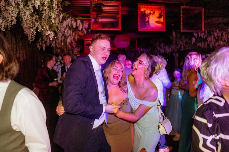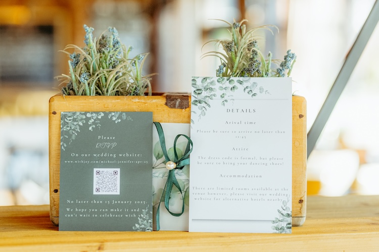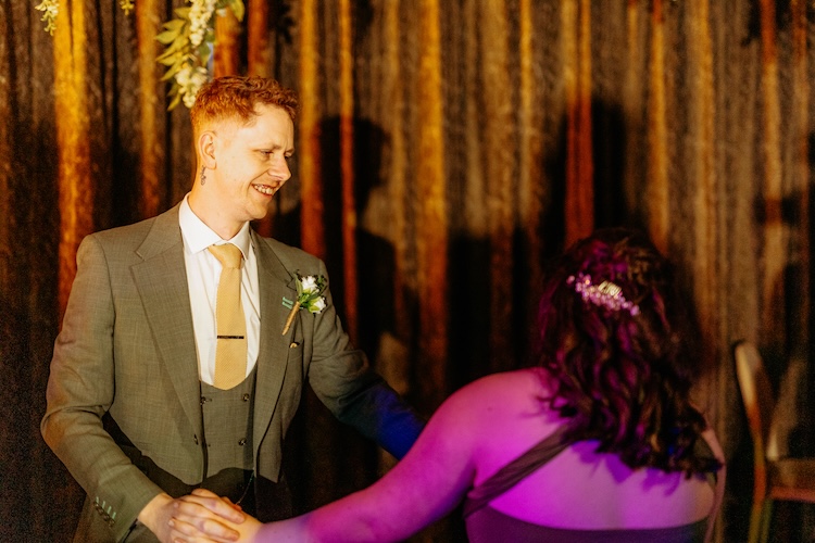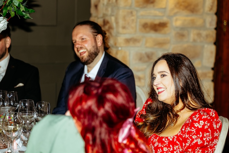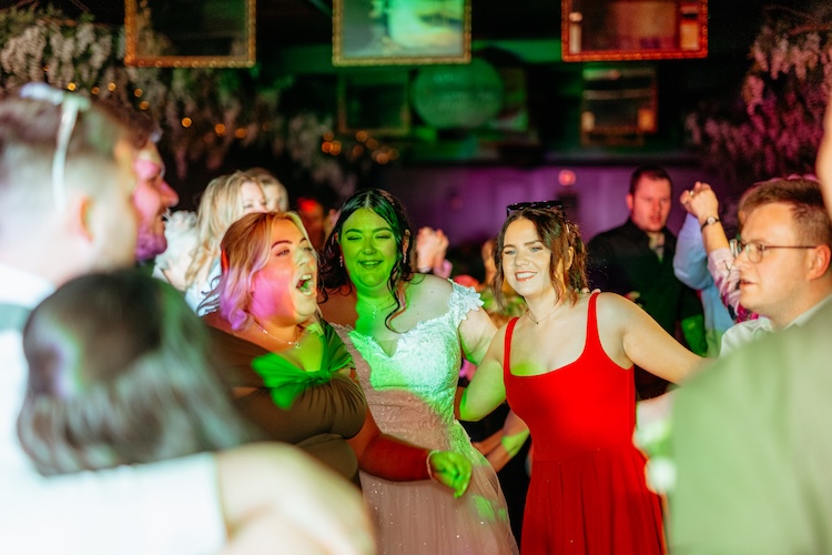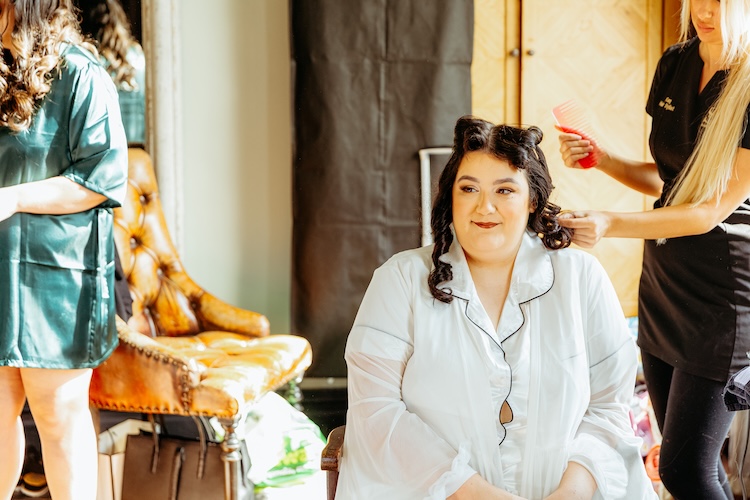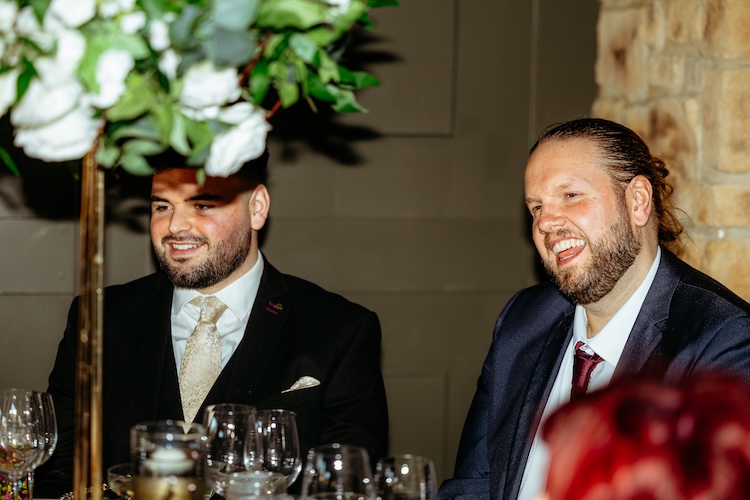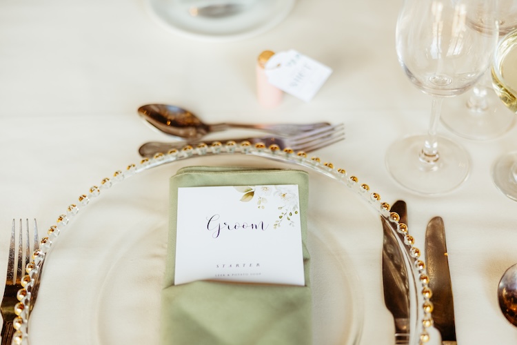 The day began with an emotional ceremony beneath a canopy of lush greenery and sparkling chandeliers. Surrounded by family and friends, Jennifer and Michael shared their vows and their first kiss as newlyweds, with the joy and excitement of their guests clearly shining through. The venue’s stylish ceremony space and beautiful natural light made every moment feel extra special.