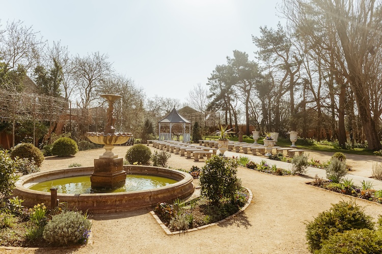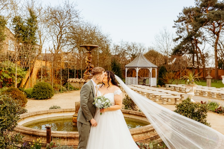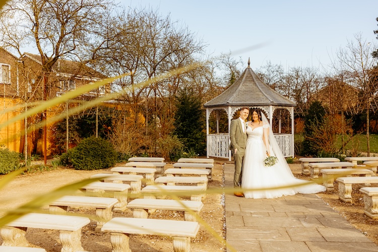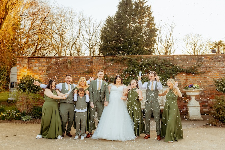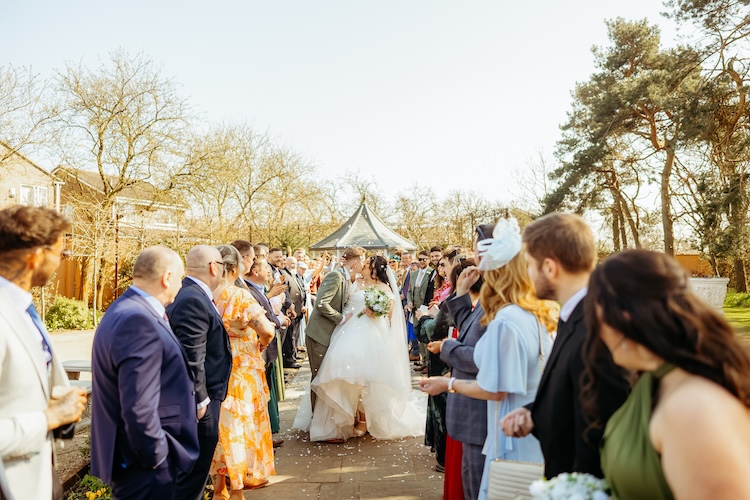 After the ceremony, the newlyweds and their guests enjoyed the hotel’s picturesque gardens – perfect for group portraits, candid moments, and relaxed couple photos.