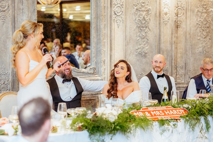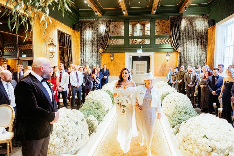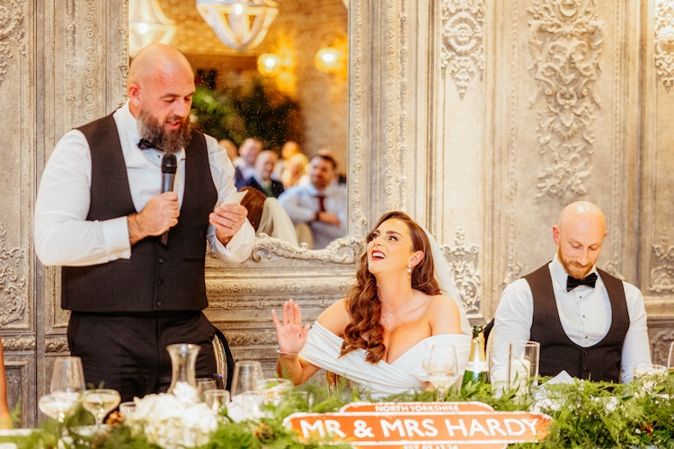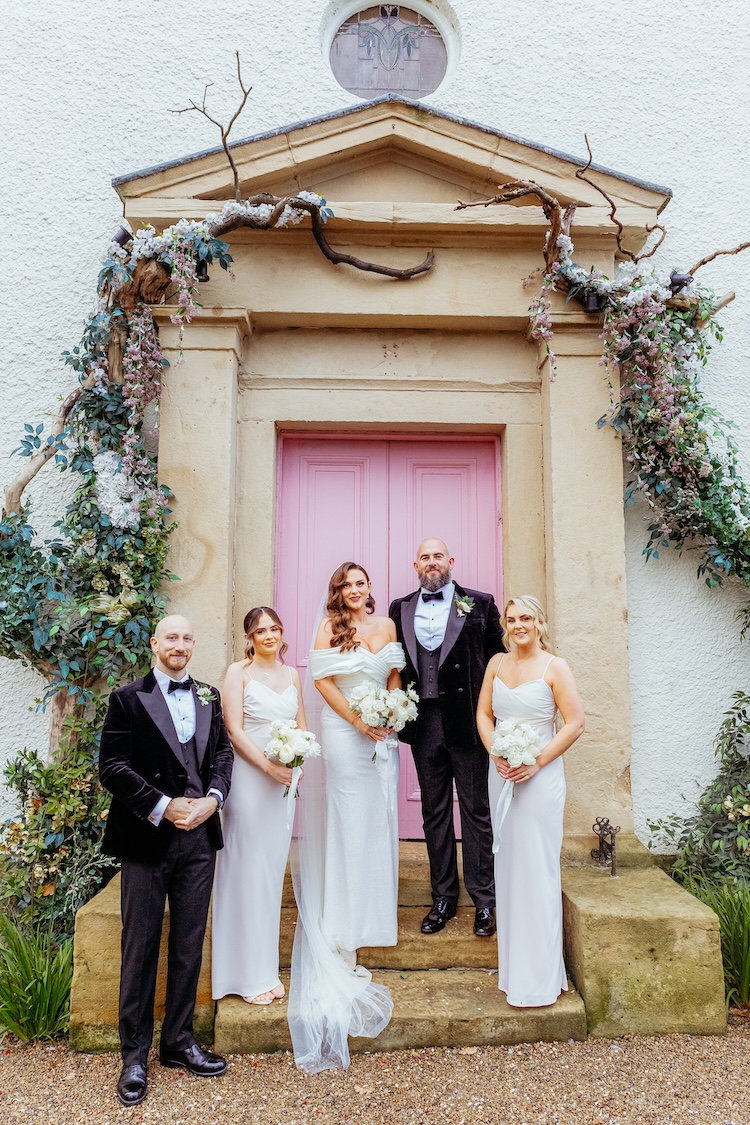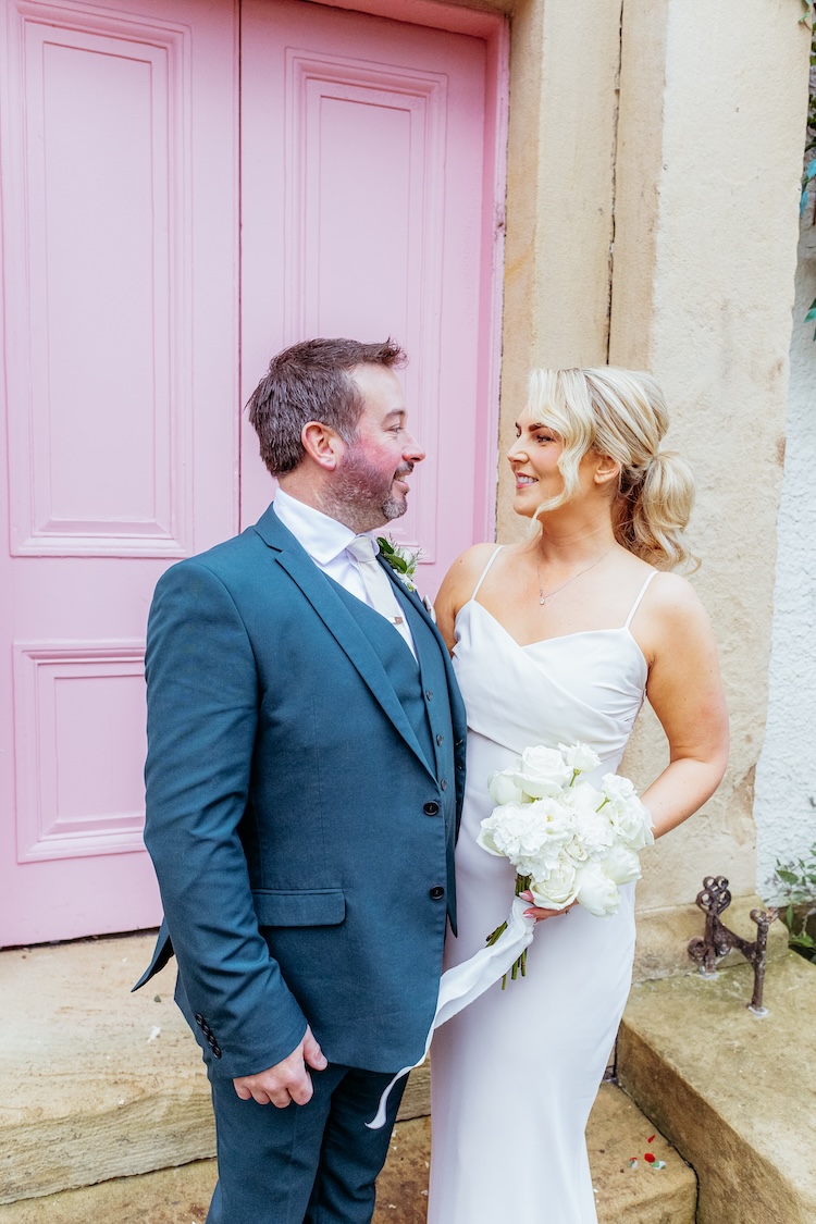 The day began with Katy and James’s emotional ceremony, surrounded by their family and friends. After exchanging vows, the couple made the most of the hotel’s beautiful grounds for their portraits, capturing the excitement and joy of their new chapter together. One of the standout moments was the classic doorway portrait, with Katy looking radiant in her bridal gown and James by her side.