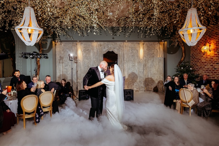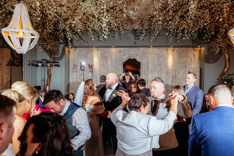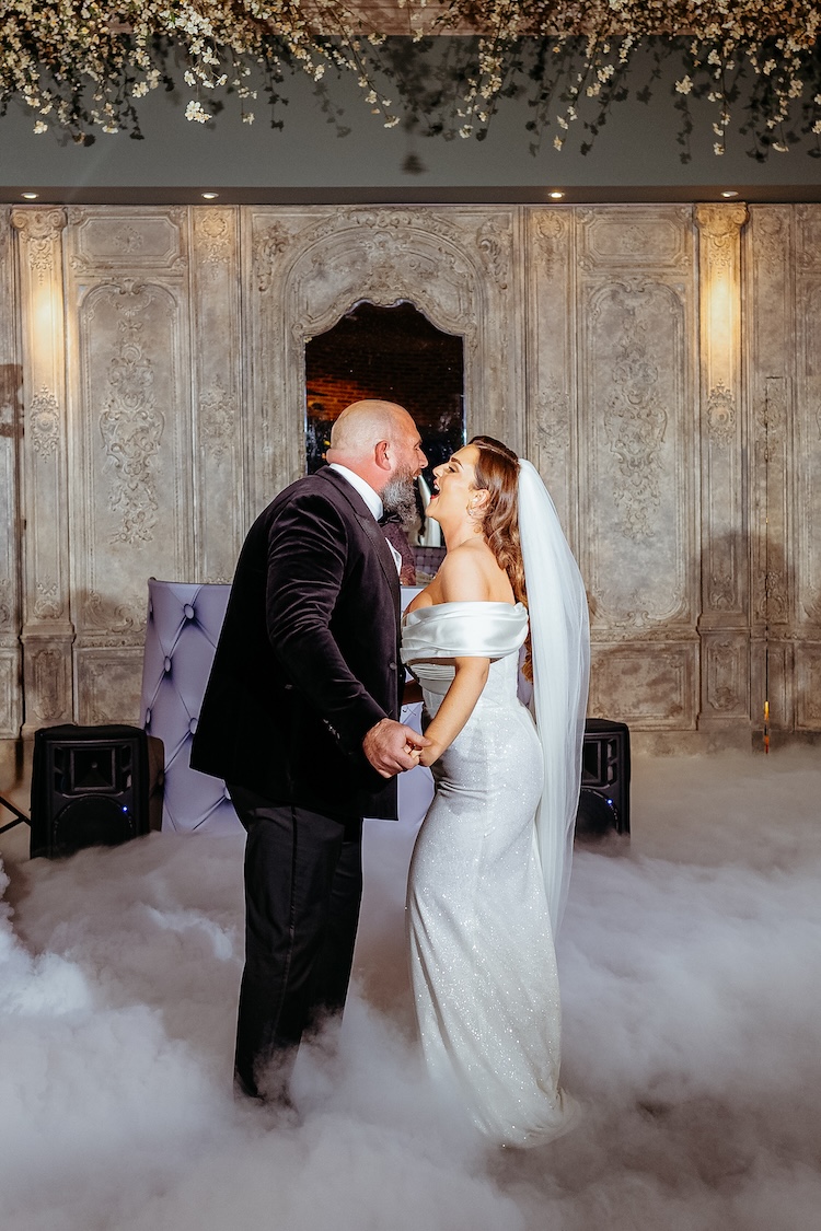 The reception was full of energy and laughter, with heartfelt speeches that brought both tears and smiles. The stunning décor, classic table settings, and lush greenery added to the sophisticated atmosphere of the celebration. As the evening unfolded, Katy and James shared their first dance as husband and wife, surrounded by family and friends, with a magical cloud of low-lying fog creating a truly cinematic moment.