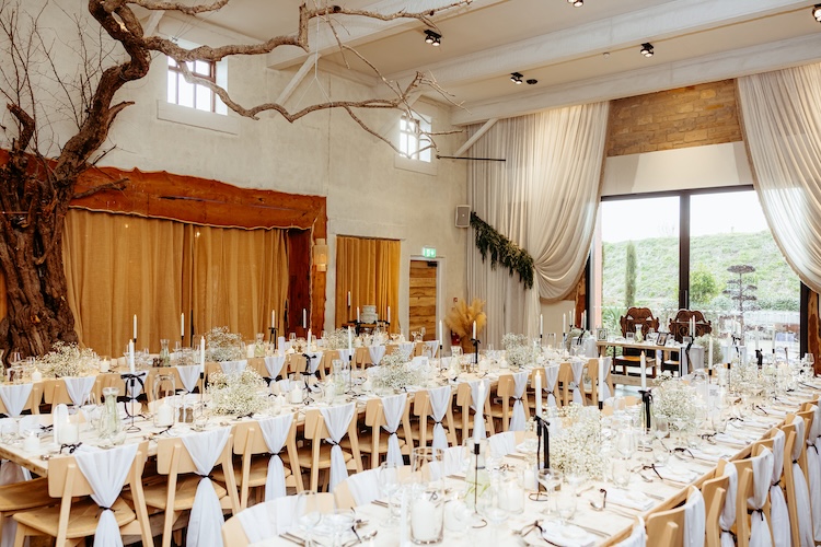 The day began with preparations in the farm’s charming rooms, followed by a beautiful ceremony and a drinks reception where everyone could soak in the scenery and celebrate together. As the evening unfolded, the party continued with laughter, dancing, and plenty of smiles, capturing the true spirit of Rebecca and Kyle’s relationship.