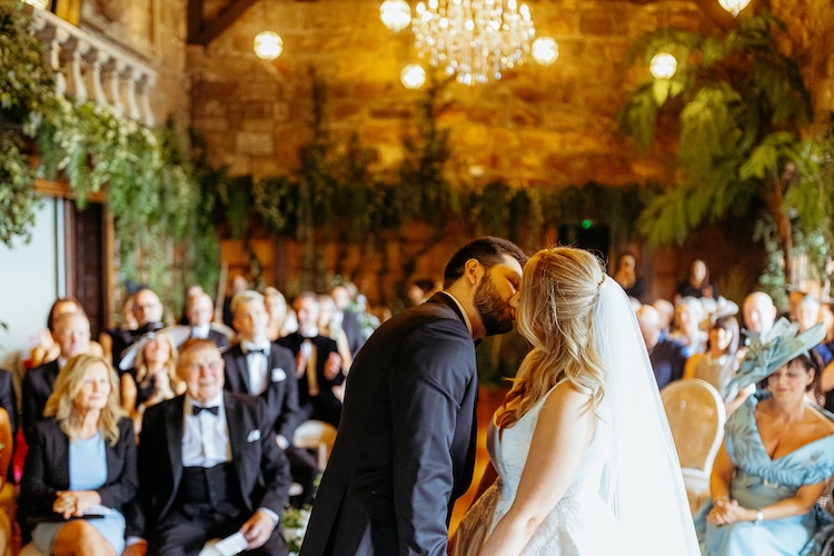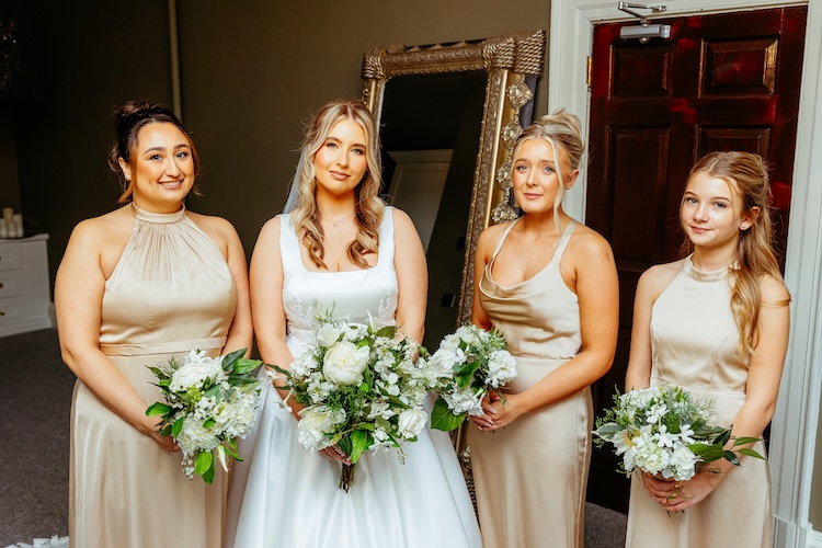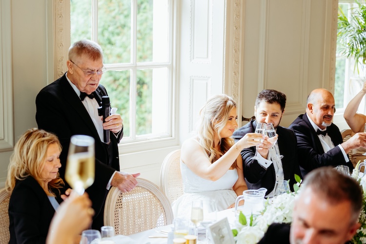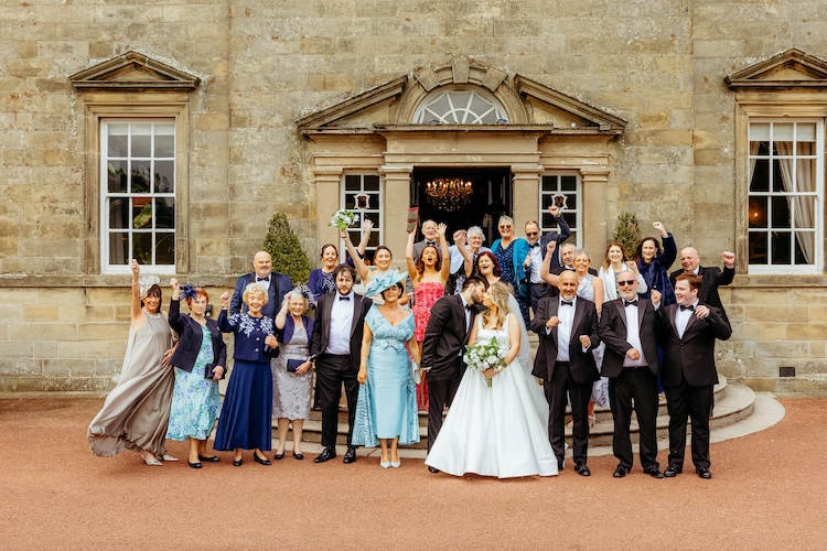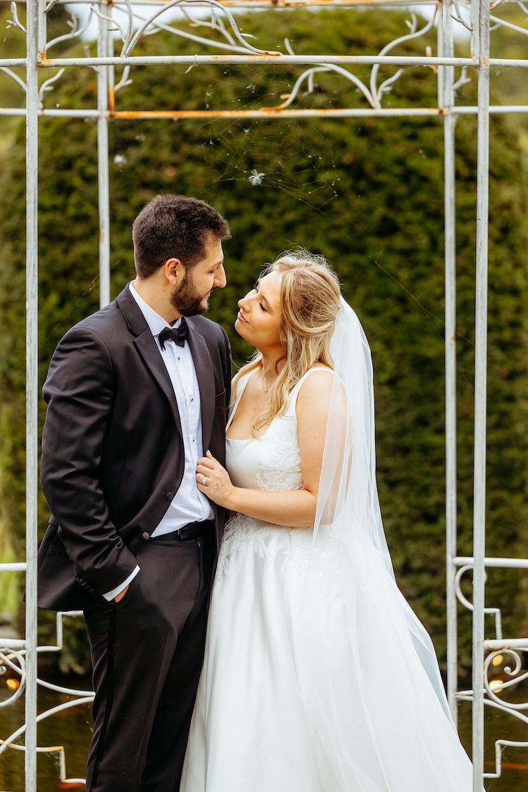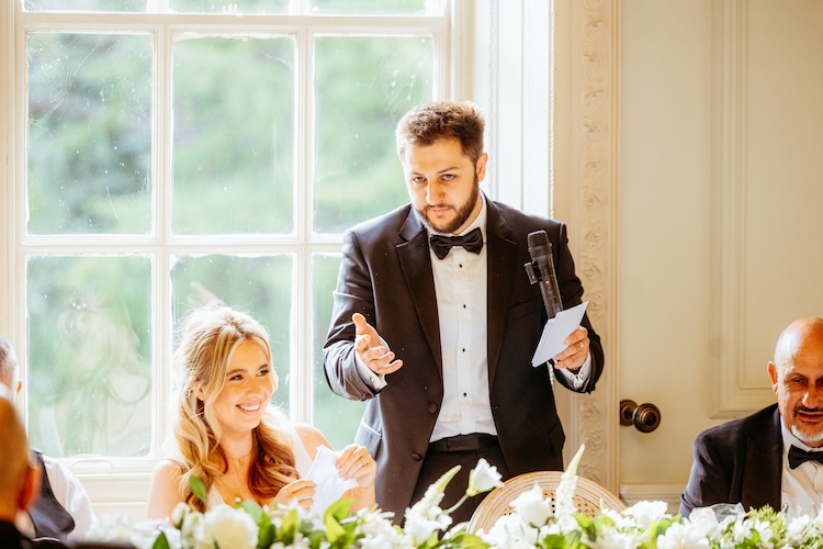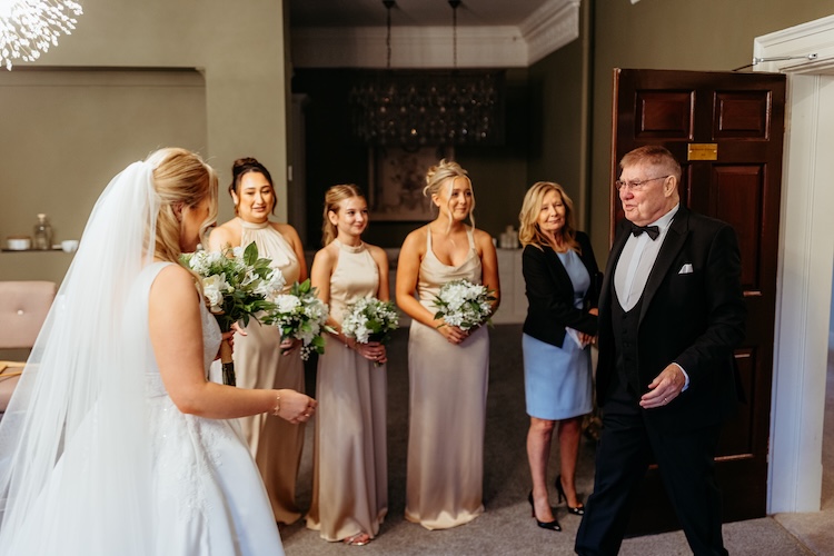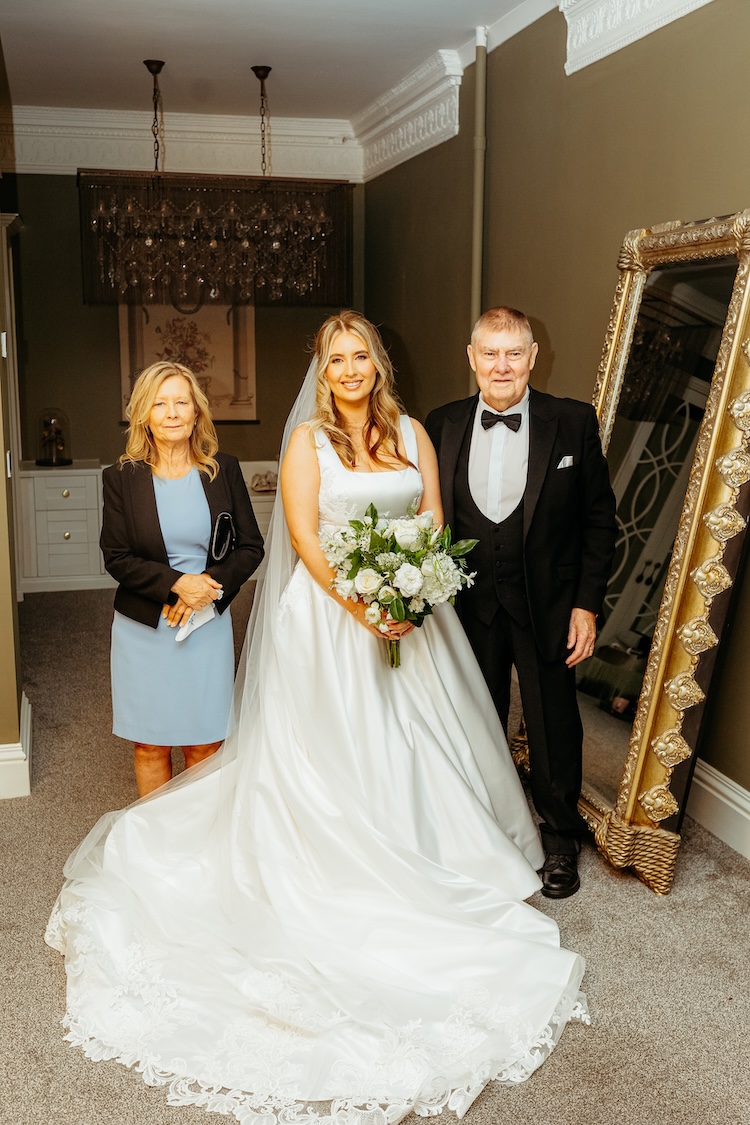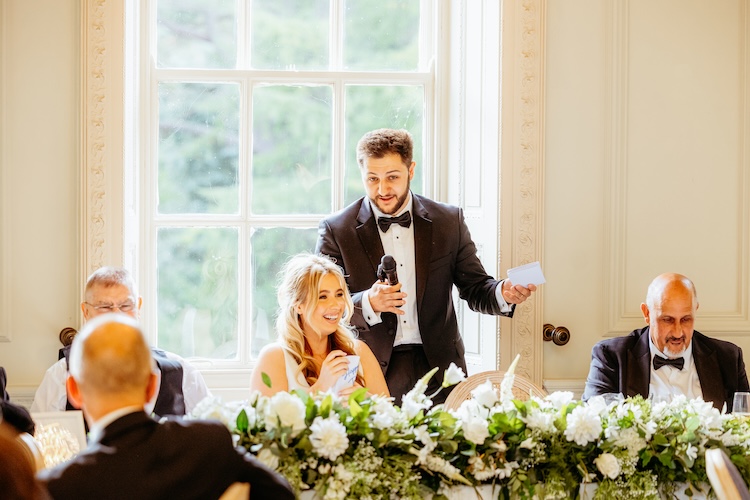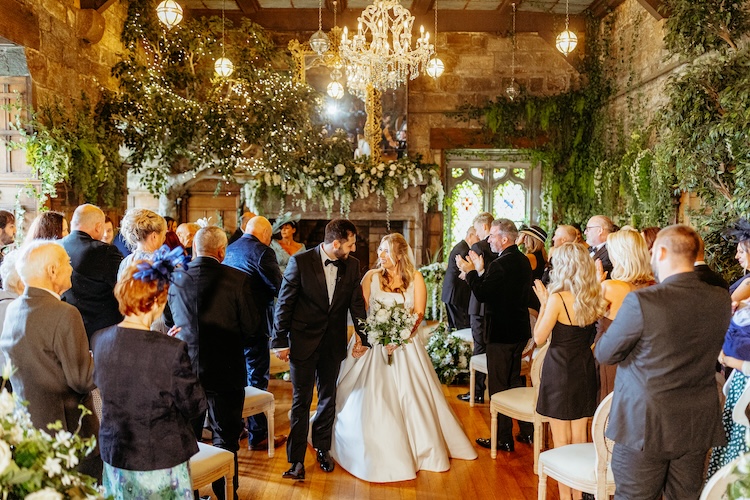After the ceremony, the newlyweds made the most of Lemmington Hall’s iconic staircase, adorned with cascading white florals. Samantha looked radiant in her gown, and Mike couldn’t take his eyes off her as they shared a quiet moment together, captured in a romantic portrait at the heart of the Hall.