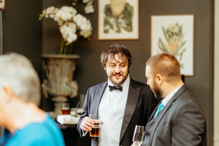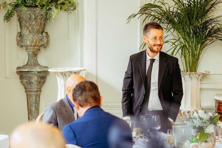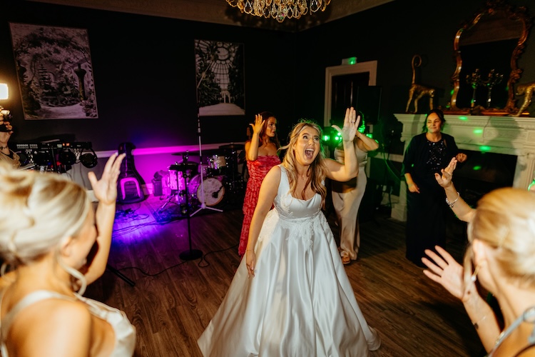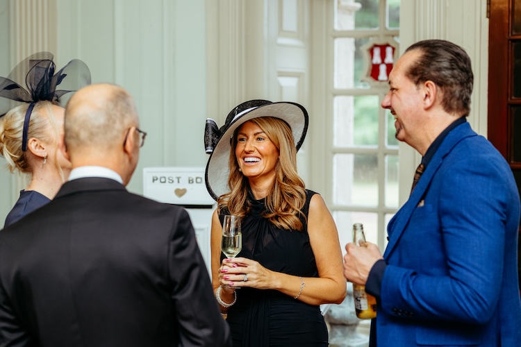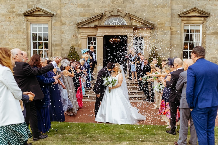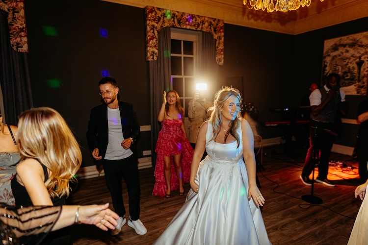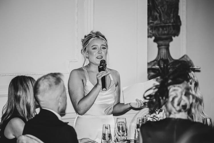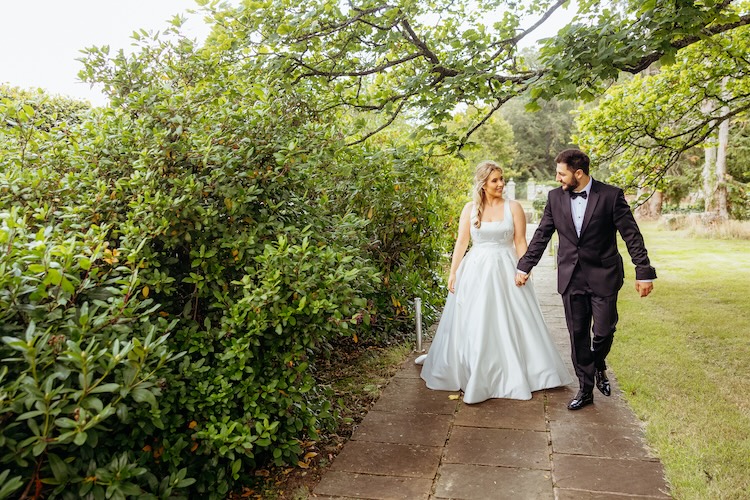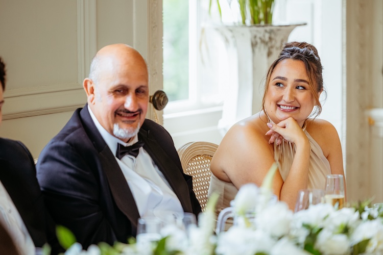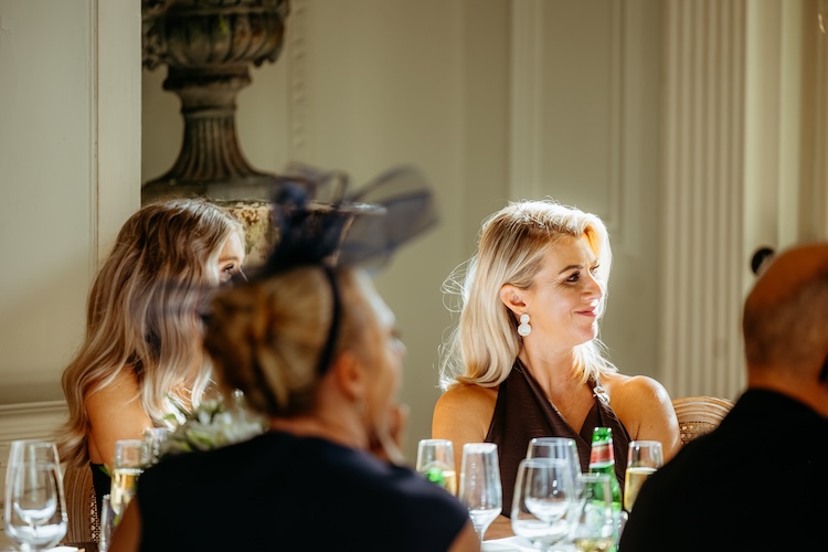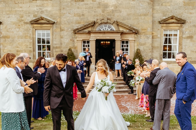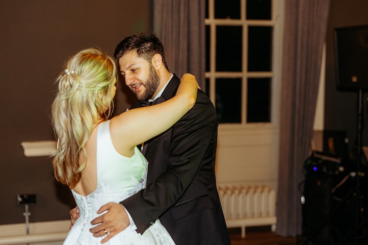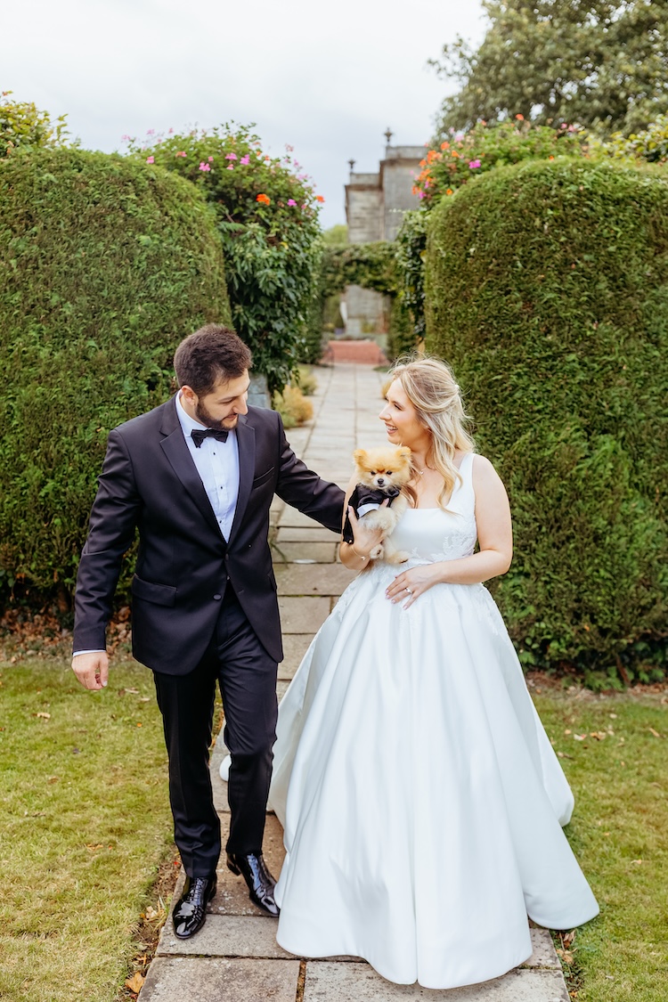 After the ceremony, the newlyweds made the most of Lemmington Hall’s iconic staircase, adorned with cascading white florals. Samantha looked radiant in her gown, and Mike couldn’t take his eyes off her as they shared a quiet moment together, captured in a romantic portrait at the heart of the Hall.