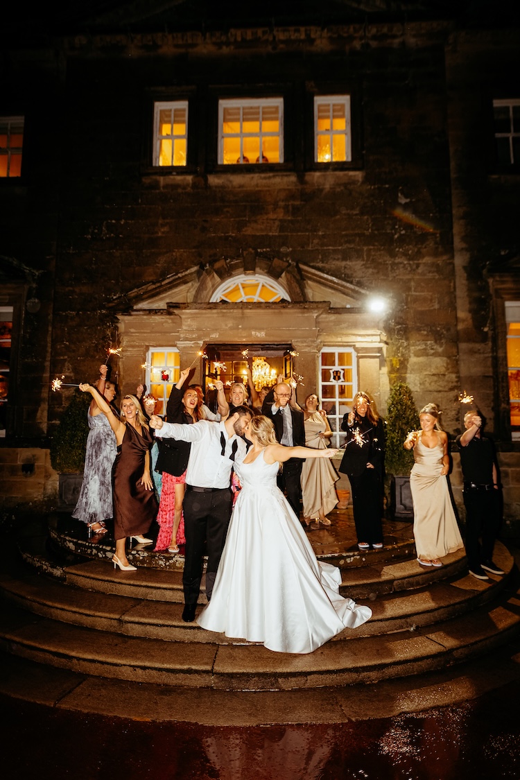 The festivities continued into the evening with a sparkler celebration on the grand steps outside. Surrounded by friends and family, Samantha and Mike ended their wedding day with laughter, dancing, and the warm glow of sparklers lighting up the night.