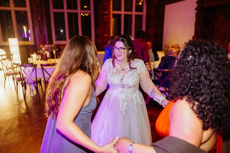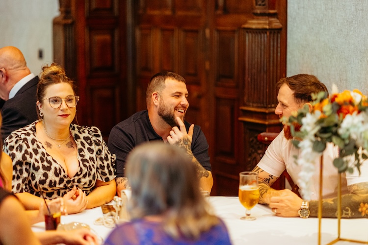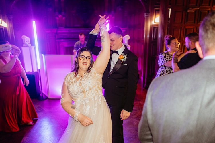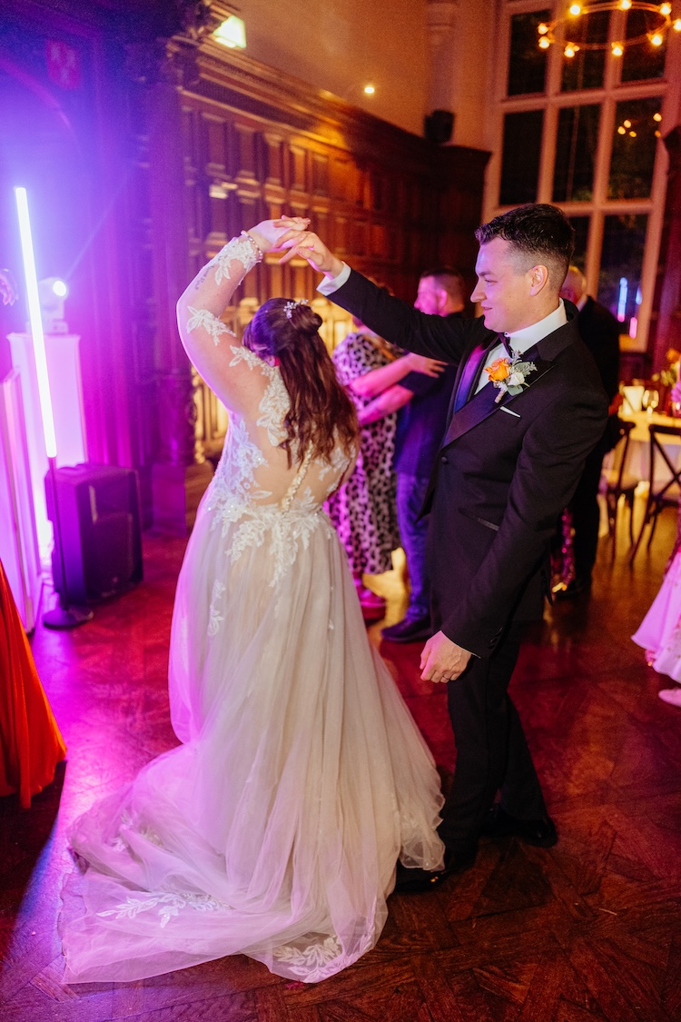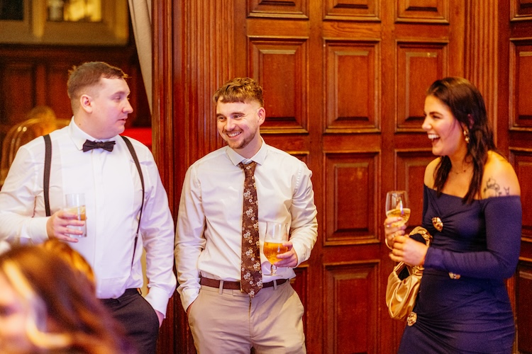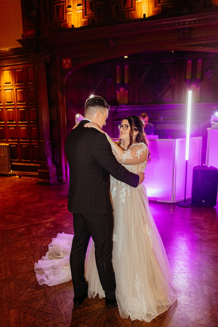 The celebrations continued into the evening with a lively party in Jesmond Dene House’s grand hall. Sydney and Lewis shared their first dance surrounded by glowing lights and the warmth of their loved ones, while guests filled the dance floor and enjoyed every moment of the festivities.